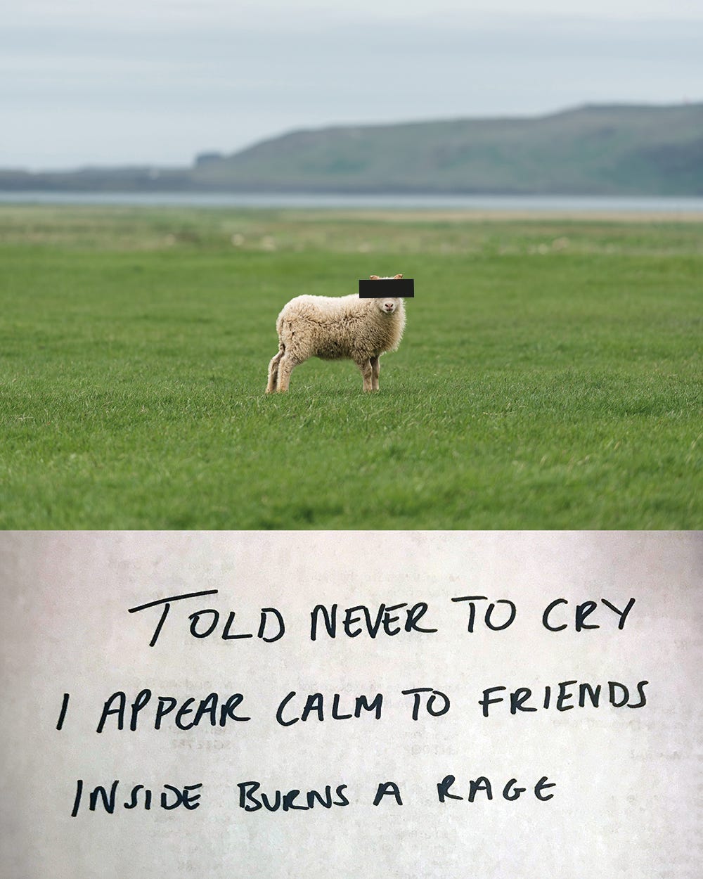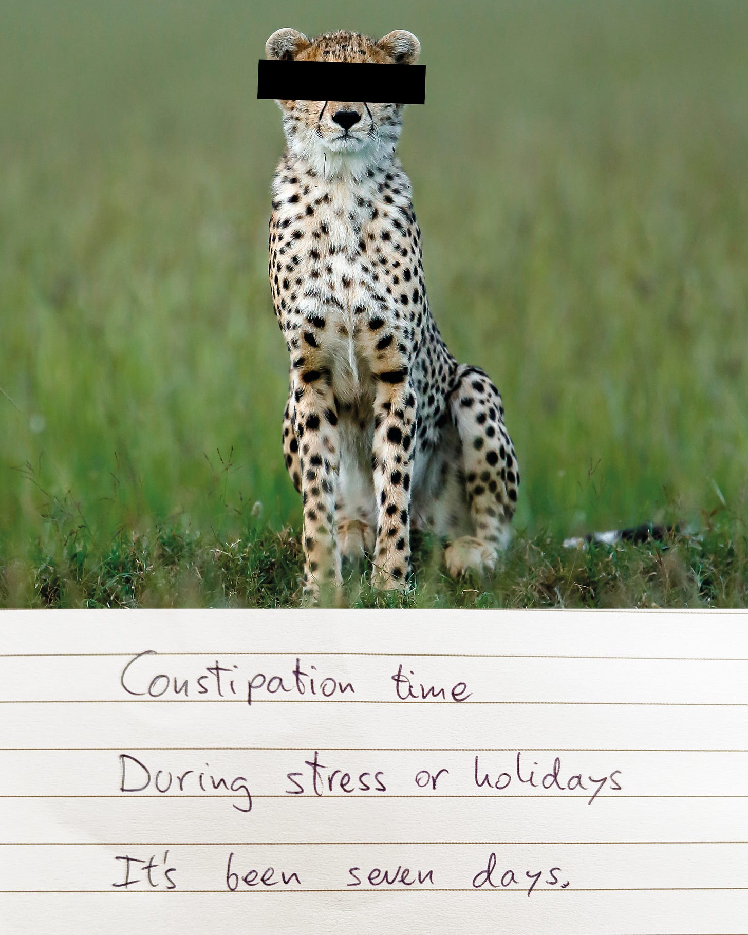 They are from my series Anonymous Animal Haiku Confessions, which pairs animals with censored eyes and confessions written in a haiku format.