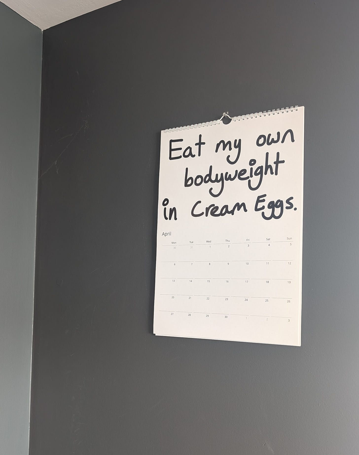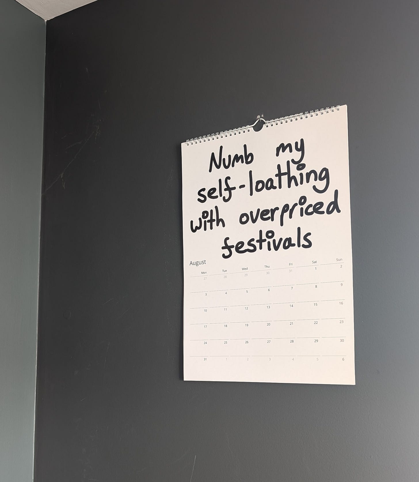 I wanted to make a calendar that honours the beautiful mundanity and occasional lacklustre nature of life. The intention isn’t to encourage these moments - it’s to laugh at them, so they're more acceptable if (and when) they do occur.